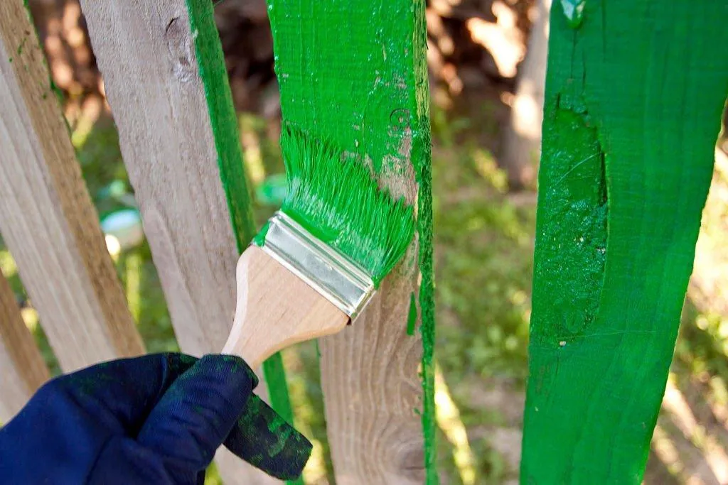 Applying a fresh coat of stain to surfaces like decks, fences, or outdoor furniture, enhancing aesthetics, and providing protection against the elements.